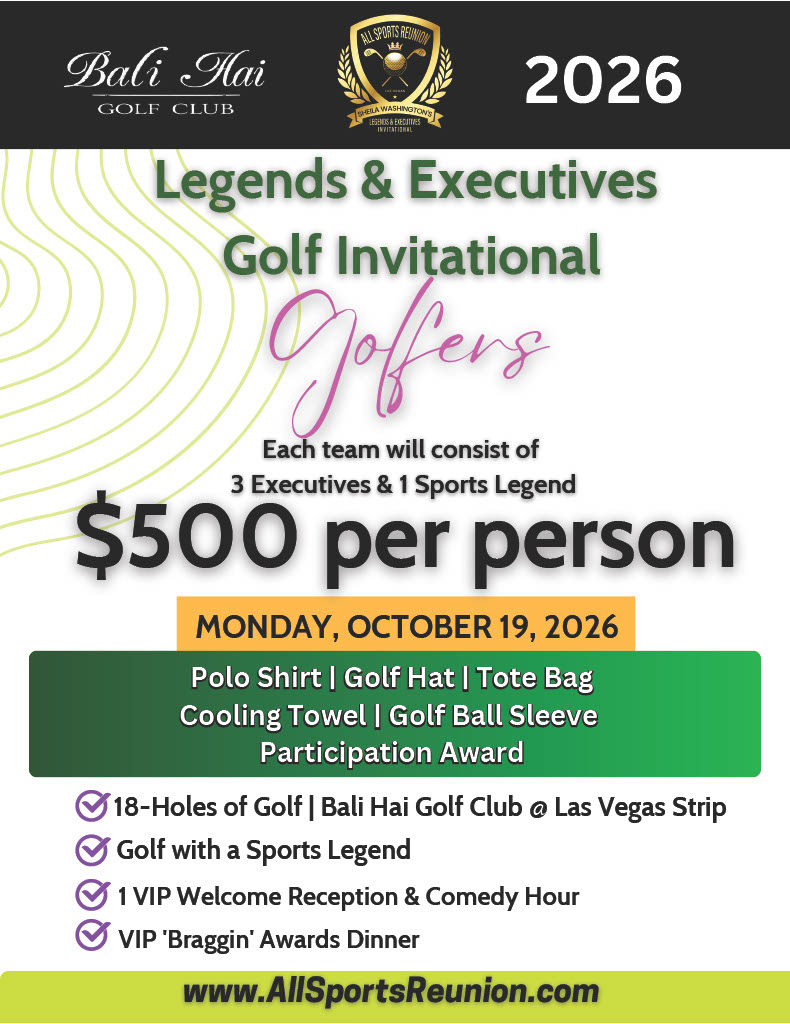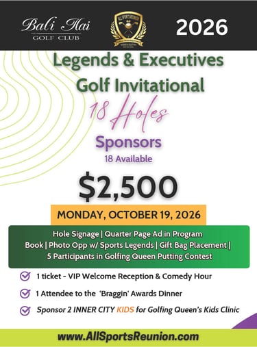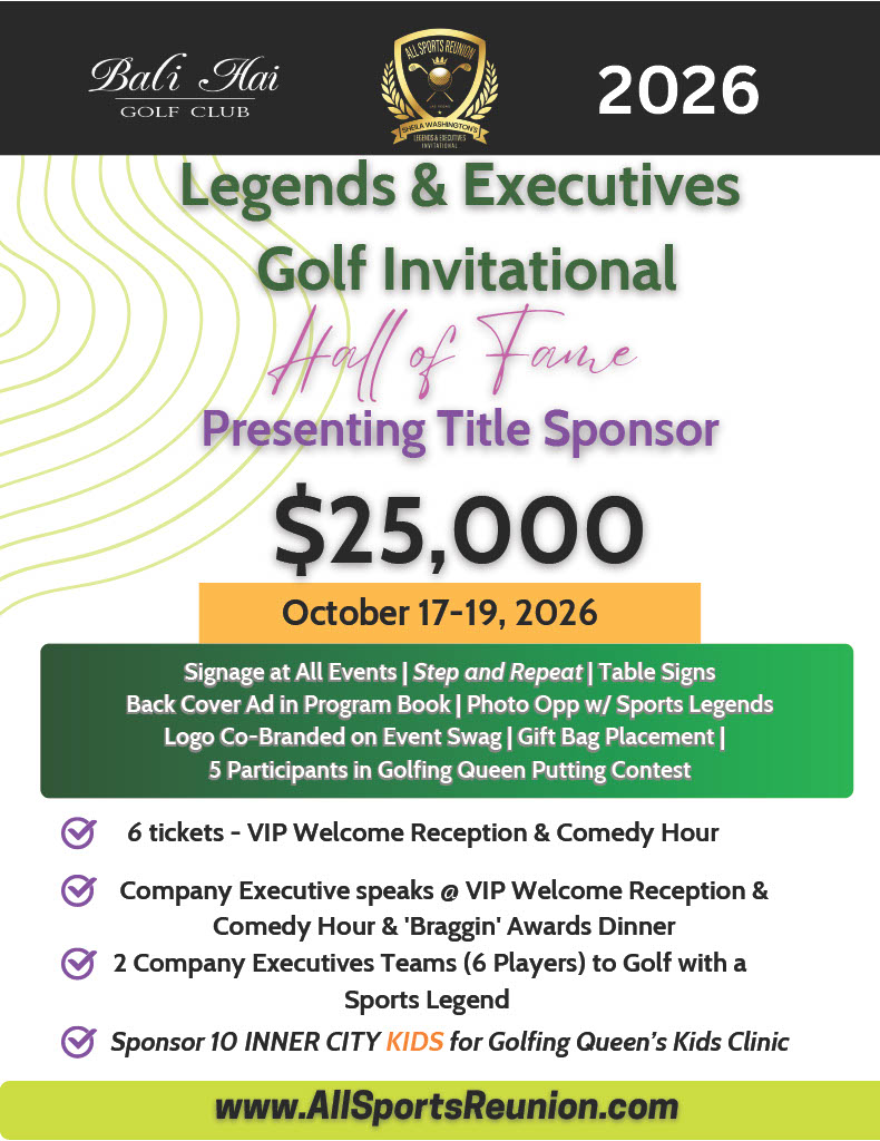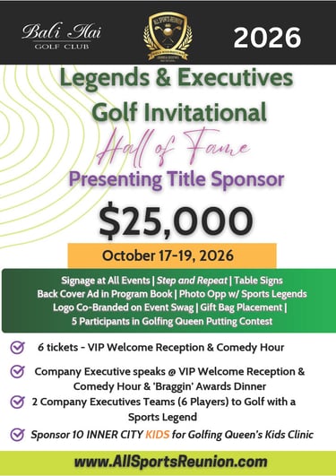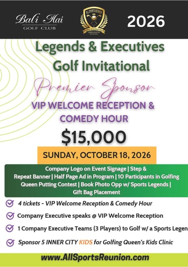 Join us for a 3-day event: VIP Welcome Jazz Reception & Golf with Sports Legends & Corporate Executives.